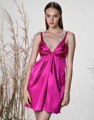 Vestido Curto de Alças com em cetim. Detalhes no top em uma perfeita combinação de estilo.