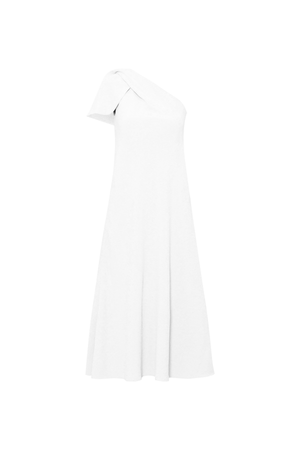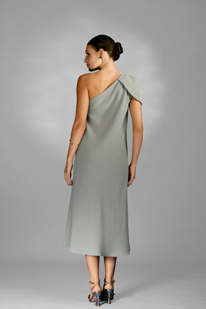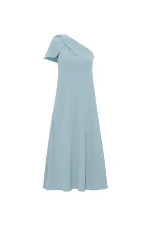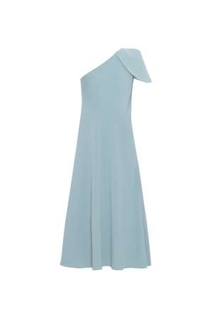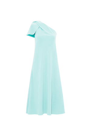Vestido confeccionado em crepe com design de um ombro só, trazendo elegância e modernidade em uma peça única.