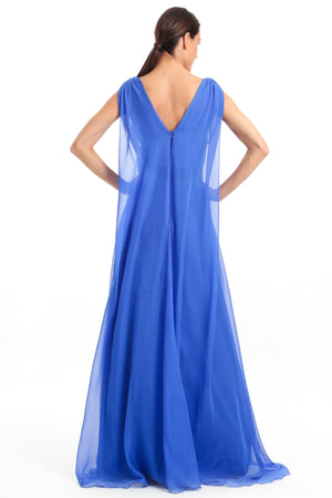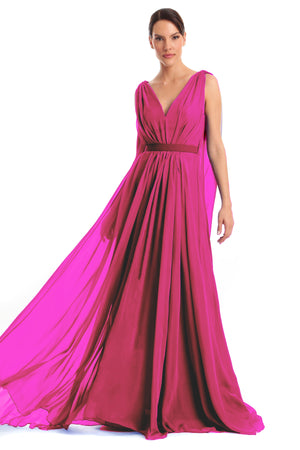 Vestido lindo em chiffon, com decote em V, a capa trás todo charme e sofisticação a peça, deixando o elegante e chique. O cinto do mesmo tecido, acompanha a produção.