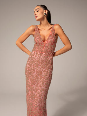 Deslumbre-se com o nosso exclusivo Vestido Longo Bordado. Feito com tule ilusão, todo bordado a mão, este vestido de decote em V é perfeito para ocasiões especiais. Seu design refinado e elegante vai te fazer sentir como uma verdadeira obra de arte. Aproveite a exclusividade em um vestido luxuoso.