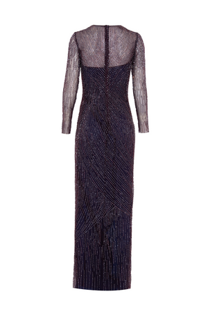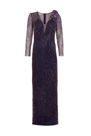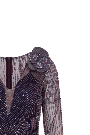 Este vestido longo em tule combina elegância e sofisticação com seu bordado feito inteiramente à mão. As mangas longas acrescentam um toque clássico, enquanto o trabalho artesanal detalhado realça a delicadeza da peça, perfeita para ocasiões especiais que exigem um visual refinado e exclusivo.