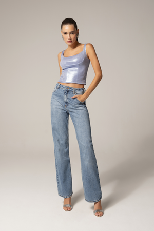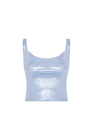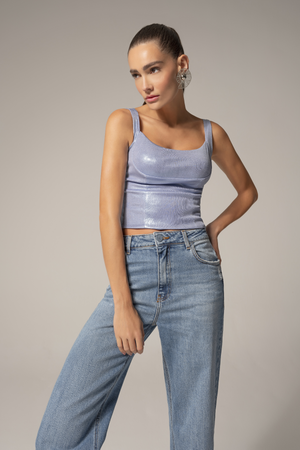 A regata recortes decote quadrado é perfeita para quem busca um look elegante e sofisticado. Com alças finas e decote quadrado, a peça possui recortes estratégicos modernos no busto, valorizando a silhueta. Seu tecido levemente metalizado traz um toque de luxo ao visual.