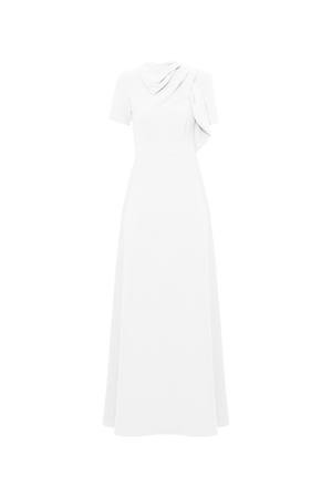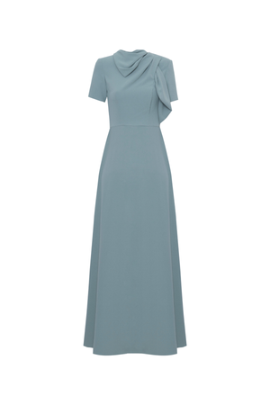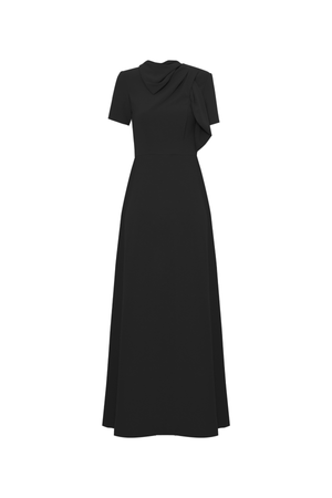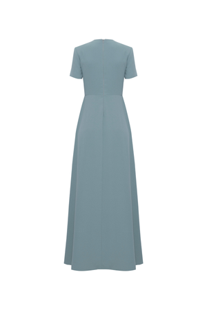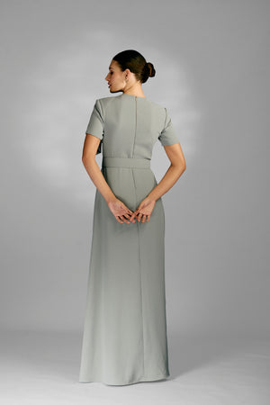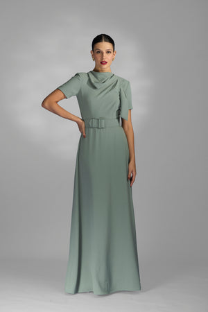 Vestido longo em crepe com cinto no mesmo tecido, saia evasê oferece movimento e leveza à peça. O destaque fica por conta da prega na parte superior, que adiciona um toque de modernidade ao visual. Com mangas curtas e corte impecável.
