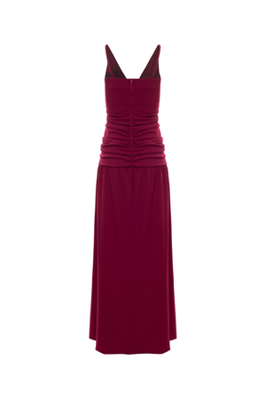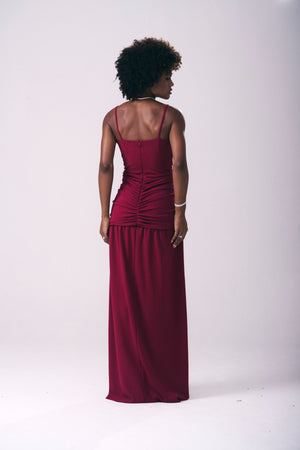Sofisticação em forma de vestido. Em em malha crepe, este modelo longo apresenta decote em V que valoriza delicadamente o colo. As alças finas proporcionam leveza e elegância, enquanto a pala drapeada na cintura define a silhueta com refinamento. A saia alongada cai com fluidez natural, criando movimento gracioso. Finalizado com zíper invisível nas costas para um acabamento impecável e discreto. Uma escolha perfeita para quem busca sofisticação e conforto em ocasiões especiais.