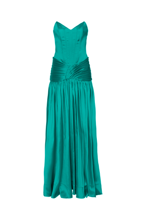 Vestido longo com estrutura de corselet, corpo comprido, com barbatanas prespontadas e saia toda drapeada. Vestido digno de tapete vermelho!