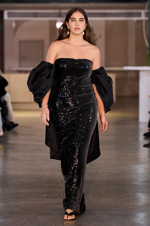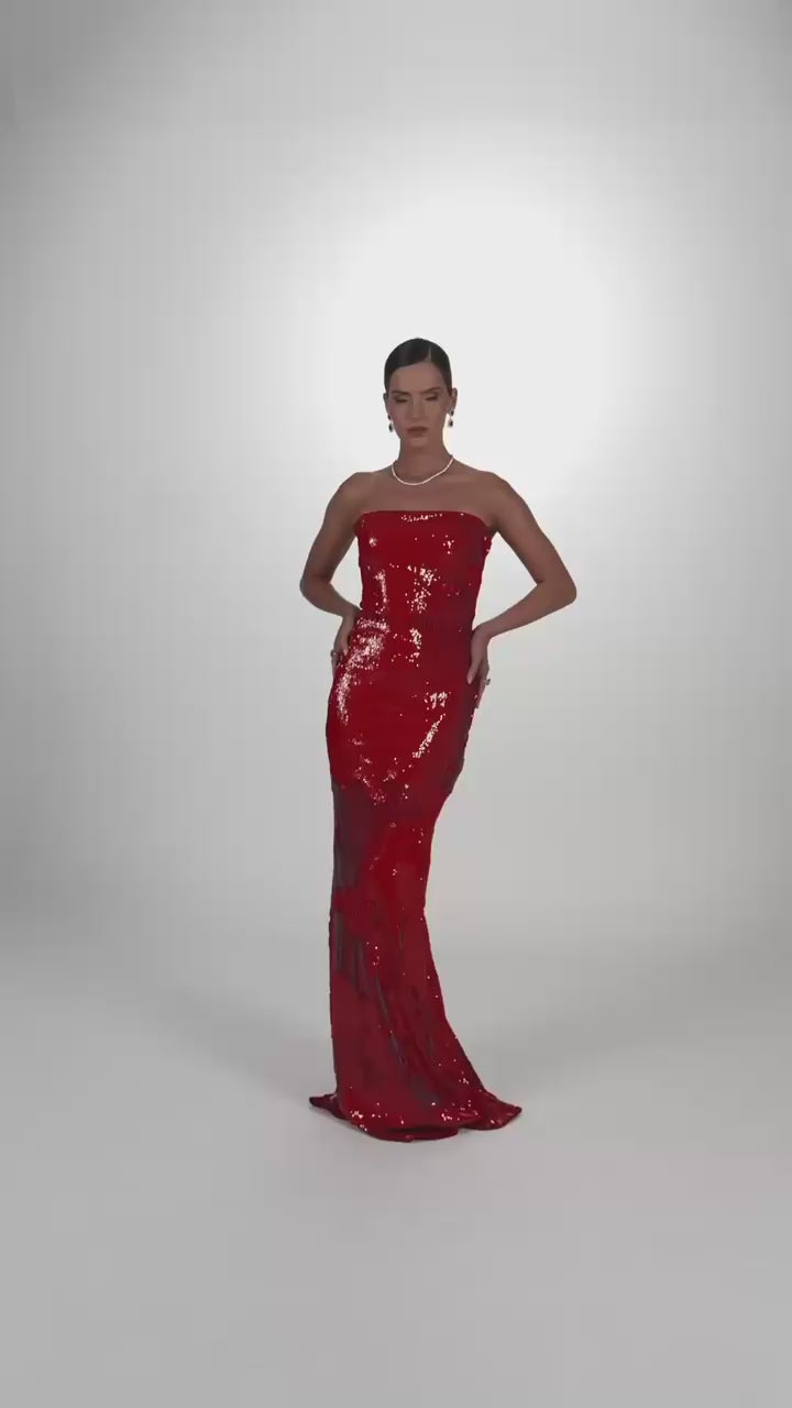 Este vestido longo em paetê vinil combina sofisticação e estilo contemporâneo. Sem alças e com decote reto, ajusta-se perfeitamente ao corpo, realçando a silhueta com elegância. O fechamento por zíper invisível no centro das costas proporciona um acabamento limpo e refinado, ideal para eventos que exigem um visual marcante e sofisticado.