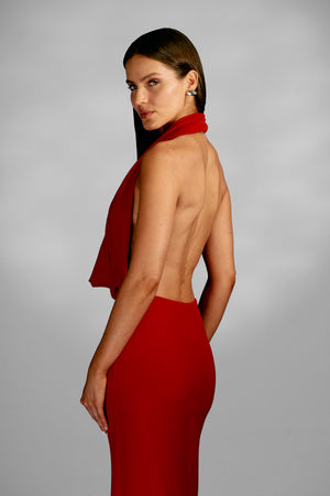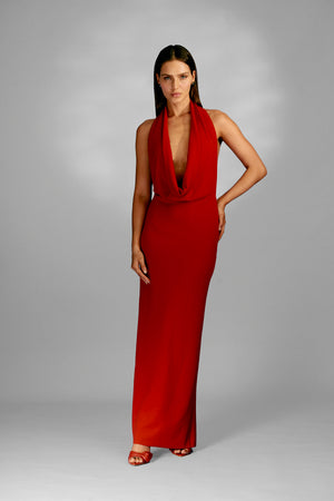 Vestido longo frente única possui um decote drapeado que adiciona um toque sensual e moderno. Seu design é charmoso e destaca o colo e as costas de forma elegante, garantindo uma aparência sofisticada e feminina. Perfeito para eventos formais e noites especiais.