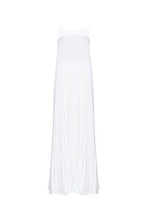 Vestido Crepe Longo Plissado Sem Alças