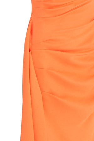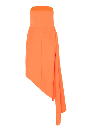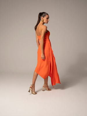 Vestido elegante com decote reto, sem alças, possui um design assimétrico mídi com pregas. Feito de crepe, é sofisticado e confortável para qualquer ocasião. Adicione um toque de estilo e elegância ao seu guarda-roupa com este item único.