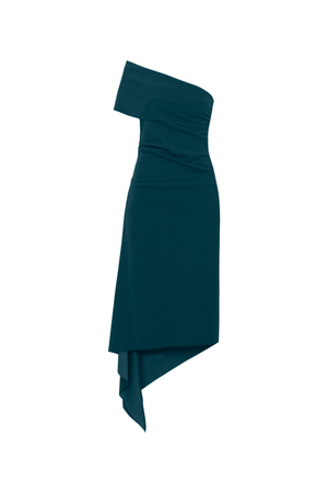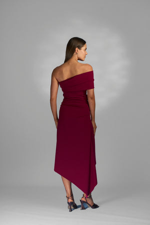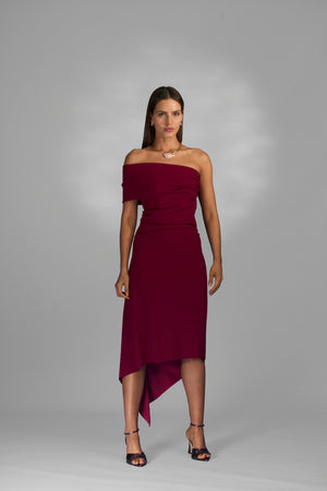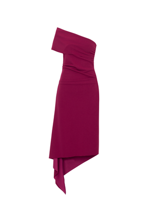 Este vestido midi em crepe malha destaca-se pelo design assimétrico com um ombro só e drapeados suaves que criam movimento elegante. O corte ajustado valoriza a silhueta, enquanto o tecido leve e confortável oferece sofisticação e praticidade para ocasiões especiais.