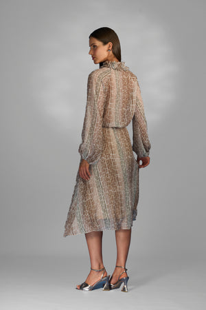 O Vestido Mídi Estampa Exclusiva Com Mangas é a escolha perfeita para um visual elegante e versátil. Com tecido fluido de musseline e estampa exclusiva inspirada na islandia, a peça traz mangas bufantes que adicionam volume e charme, juntamente com uma gola franzida e uma tira ajustável para realçar a cintura. Aproveite essa combinação refinada de detalhes para se destacar em qualquer ocasião.