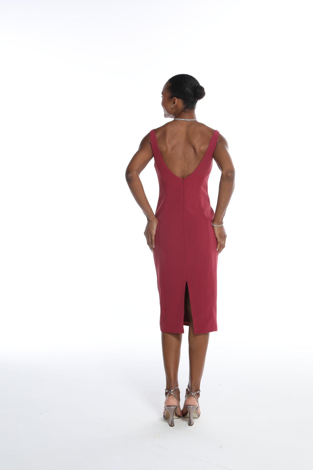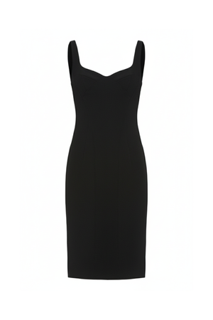 Vestido midi estruturado em crepe, com modelagem ajustada que valoriza a silhueta de forma sofisticada. O modelo apresenta decote quadrado suavizado, alças largas e recortes estratégicos que alongam o corpo e garantem caimento impecável.