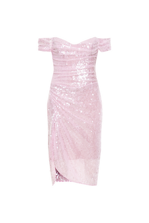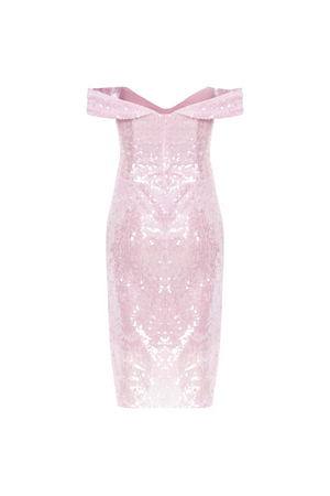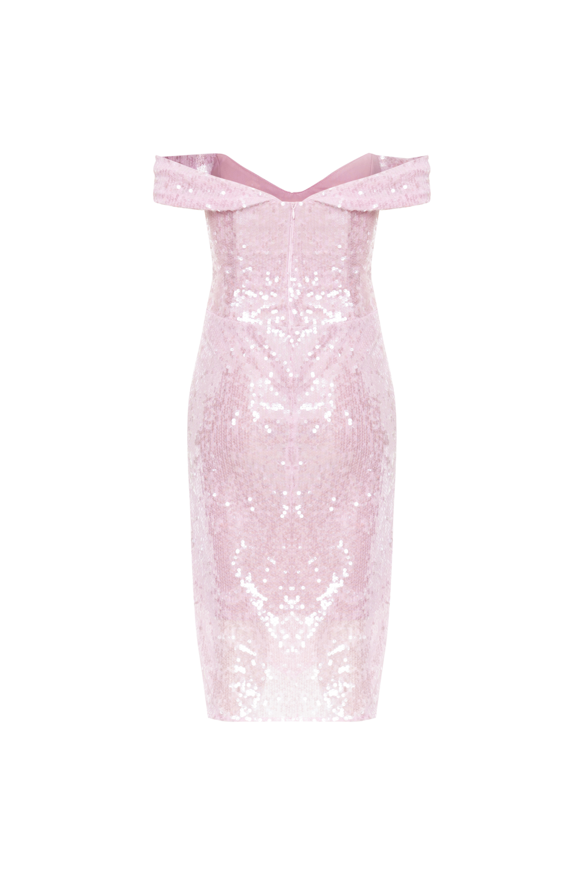 Vestido Mídi Paetê Translúcido Decote Ombro A Ombro