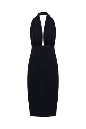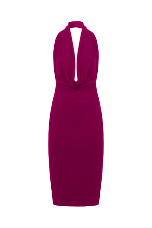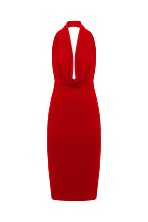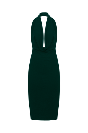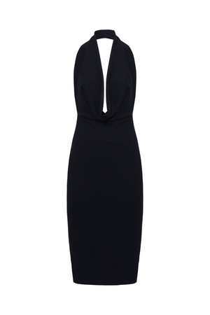 Vestido midi frente única com decote profundo em drapeado acrescentando um toque sensual e moderno. Com um design que destaca o colo e os ombros.