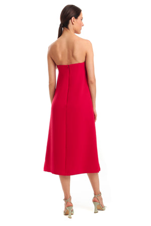 Vestido mídi de crepe stretch, super confortável, decote reto, fechamento por zíper invisível atrás. O minimalismo segue em alta, com as linhas mais retas e um ar mais clean.
