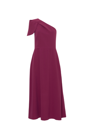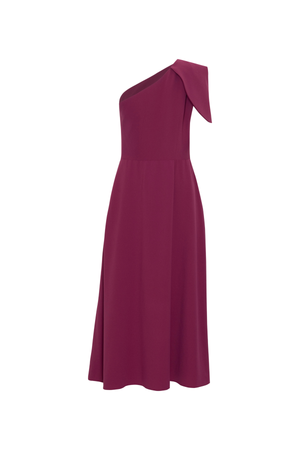Este vestido midi de crepe destaca-se pelo corte sofisticado e pela elegância da manga em um ombro único. A saia evasê valoriza a silhueta com um caimento leve e fluido, conferindo movimento delicado a cada passo. Uma peça perfeita para ocasiões que exigem estilo e refinamento.