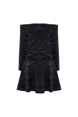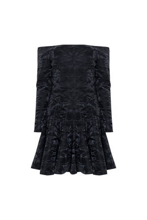 Vestido curto ombro a ombro confeccionado em um tecido 3D. Apresenta uma textura marcante que confere profundidade e um toque de exclusividade à peça.