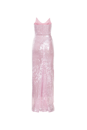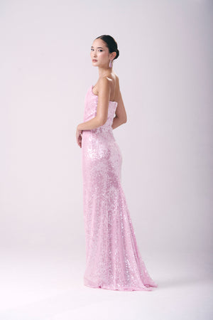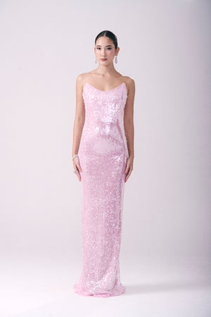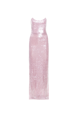 Este vestido longo sem alças, confeccionado em paetê translúcido, realça a elegância com seu acabamento delicado e brilho sutil. O decote levemente curvado com pontas valoriza o colo, enquanto a modelagem ajustada ao corpo proporciona um caimento impecável. O fechamento por zíper invisível nas costas oferece praticidade sem comprometer o design sofisticado. Ideal para ocasiões especiais que pedem um toque de glamour refinado.
