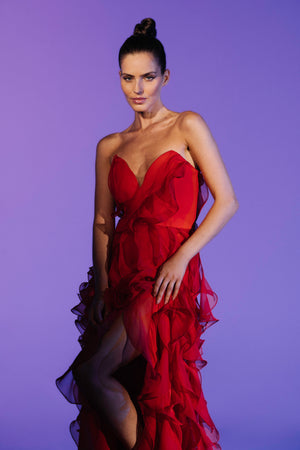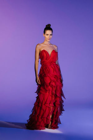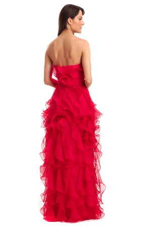 Vestido Longo Sem Alças Em Jabô